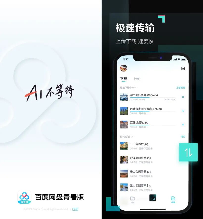 今天,百度网盘青春版在各大应用商店正式上线,为所有用户提供无差别下载、上传服务,并免费提供 10GB 储存空间。