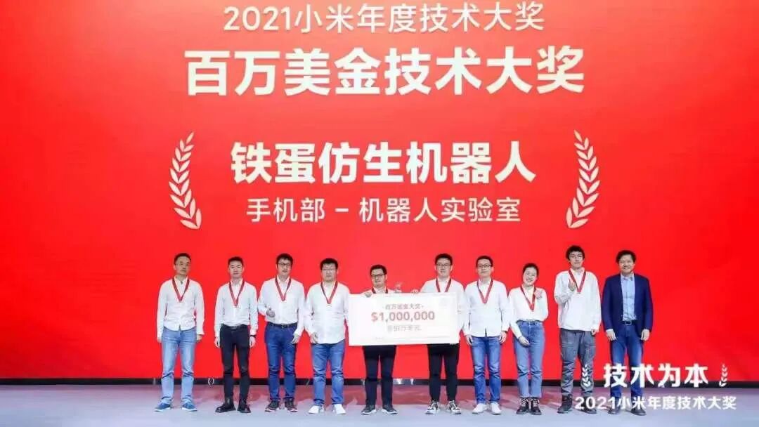 今天下午小米创始人、董事长雷军在微博发文,称今天集团上班第一天,集团举办年度小米百万美金技术大奖颁奖典礼,其中 CyberDog 铁蛋四足仿生机器人团队获最高奖项。