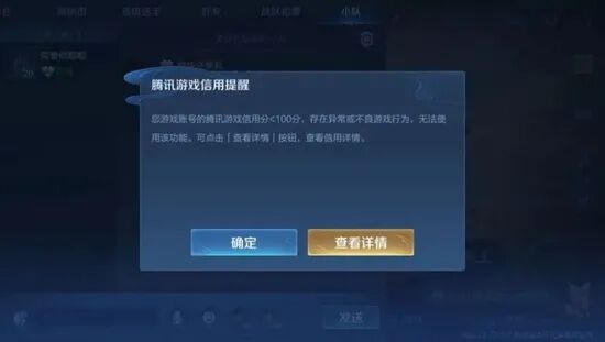 保持游戏场景固有限制条件基础上,新增信用分限制条件,要求玩家的腾讯游戏信用分大于等于 100 分,否则将无法使用发言和社交功能。