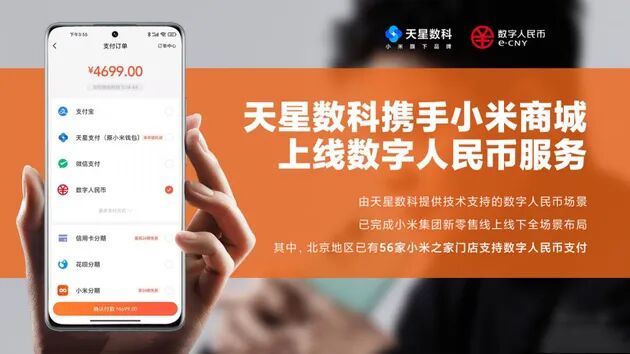 同时,在部分线下小米之家门店也可以直接用数字人民币完成支付,其中北京地区已有56家小米之家门店支持数字人民币支付。