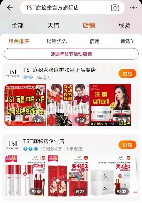 TST在淘宝、京东电商平台开设有官方旗舰店,名称统一为“TST庭秘密官方旗舰店”,目前,在上述电商平台中搜索“TST庭秘密官方旗舰店”均无法查找到对应店铺,但仍能搜索到大量TST企业店铺、TST代理商运营店铺。