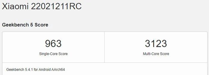 目前,Redmi K50 标准版已经出现在了 Geekbench 5 跑分中,单核跑分 963,多核跑分 3123,运行 Android 12,拥有 12GB 内存。