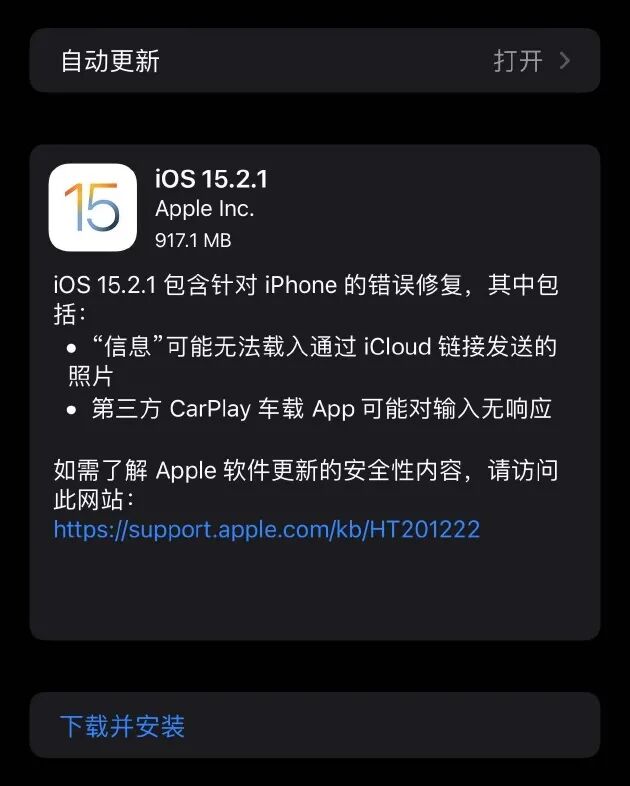 iOS 15.2.1包含针对iPhone的错误修复,其中包括,“信息”可能无法载入通过iCloud链接发送的照片,第三方CarPlay车载App可能对输入无响应等。(来源:新浪科技)