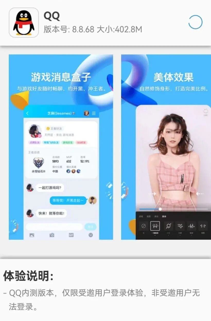 近期腾讯手机 QQ 测试版 8.8.68 发布,下载包大小达到了 402.8M。此前消息称其中内置了多达 100MB 的虚幻 4 引擎。