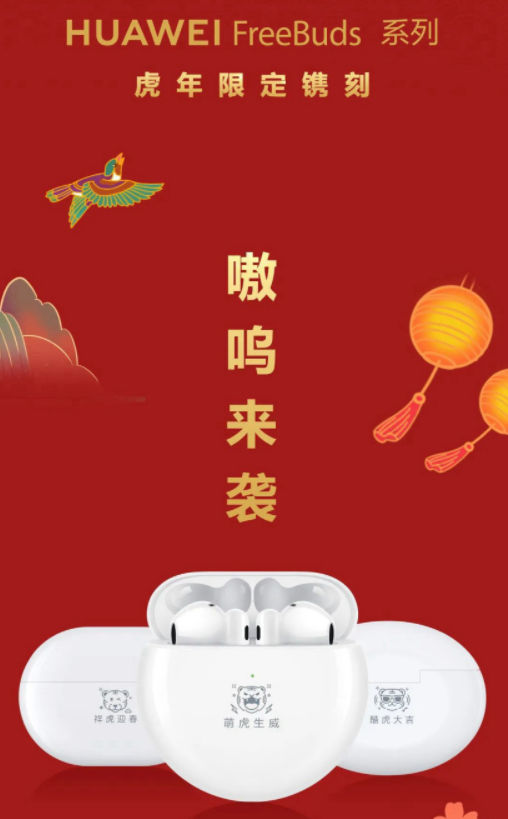 华为今天下午宣布,FreeBuds 系列耳机虎年限定镌刻来了。