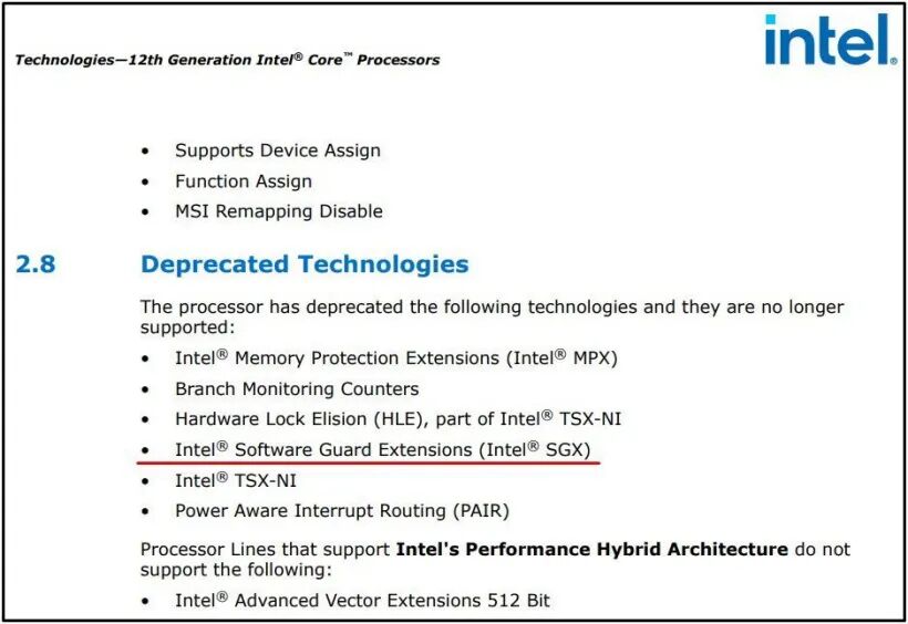 在一份问答中,多媒体影音服务商 CyberLink 表示,英特尔 SGX 功能已从英特尔第 11 代(或更新的)CPU 中删除,并且可能会在新版本的英特尔驱动程序或实用程序上删除对 SGX 的支持。