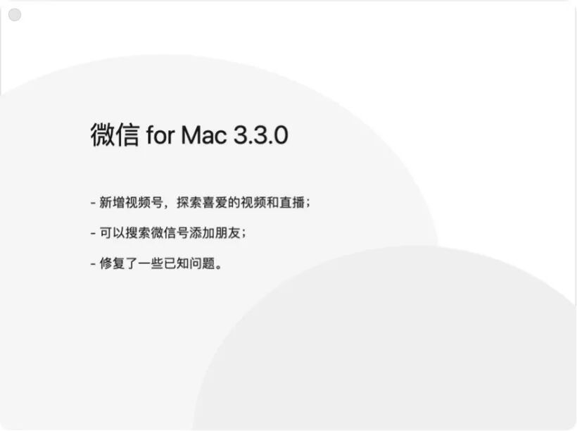 近日,微信Mac版3.3.0正式版更新,新增视频号功能,此外可以搜索微信号添加朋友。