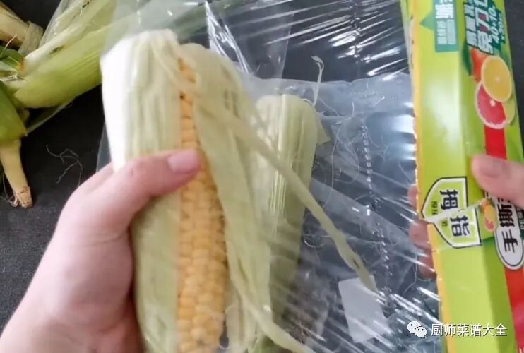 新鲜玉米、食盐、食用碱、保鲜膜。