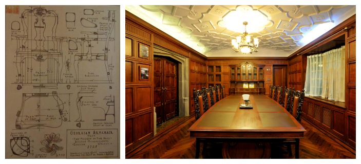 1930年7月至11月,随着建设工程的展开,邬达克陆续设计了室内的窗台、楼梯、厕所里面和天花吊顶的细部,甚至设计了部分家具,他还凭借与教会的关系,让徐家汇土山湾孤儿院的小木匠们帮忙打造家具。