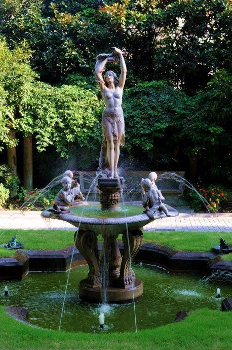 花园里的中央有一个喷泉,普绪赫喷泉。在希腊神话中,普绪赫是希腊公主,维纳斯嫉妒其美貌,派自己的儿子丘比特除掉普绪赫,没想到两人私下相爱,最终成为伴侣。据说,这座喷泉耗费巨大,但煤老板的爱情打动了邬达克,所以这口喷泉是他送的。