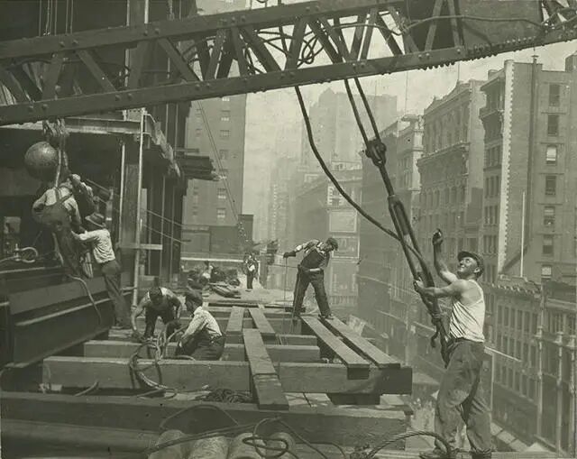 第一次世界大战,整个欧洲都被打烂了,大量的资金、人才和技术都跑到美国避险!美帝资本家发了一笔横财。1914年,美国商品输出额还是23亿美元,到了1916年就增至43亿美元,数钱数到手抽筋。钢铁、汽车、武器、造船、冶金、化工等工业部门发展迅猛。1930年开始动工修建纽约地标性建筑“帝国大厦”,当时的美国建筑工人还都是徒手拉钢筋,3400名工人仅用了410天就造好了443.7米的摩天大楼。财大气粗的美国,在二战时号称是“民主国家的兵工厂”,航母像下饺子,一样一造就是几十艘,飞机一造就是几万架。