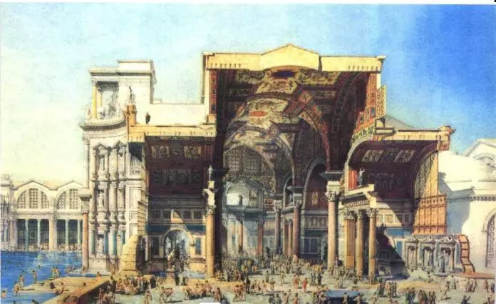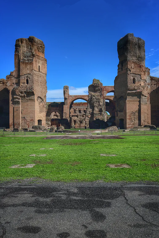 如今我们仍能从罗马的卡拉卡拉浴场遗址(Terme di Caracalla),那高达30米的墙壁、直径30米的浴池、残存的马赛克地板中感受到这座浴场当年的雄伟。这座占地124400平方米,同时可供2300人入浴的宏伟建筑,现在最豪华的洗浴中心,都不比它豪华气派。除了浴场,它还有露天泳池、健身房、按摩室、聊天室、游戏室、酒吧、饭馆、商店、花园、图书室、剧场等。小商贩、魔术师、算命的和各色手艺人等穿行其间,闹如集市。
