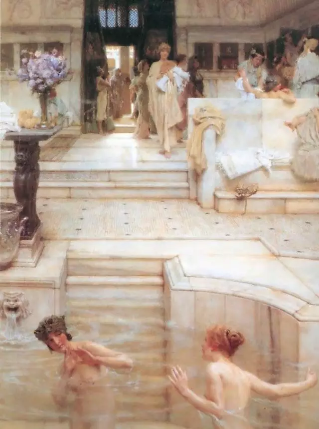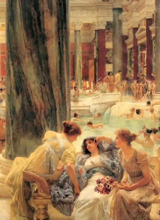 起初,古罗马的公共浴场只准许男子进入,可到了帝国时代,开始允许女性进入,甚至可以男女混浴。公共浴室是当时最重要的社交活动场所之一。女人聊服饰、聊琐事、聊八卦,男人聊政治、聊女人,炫耀财富。