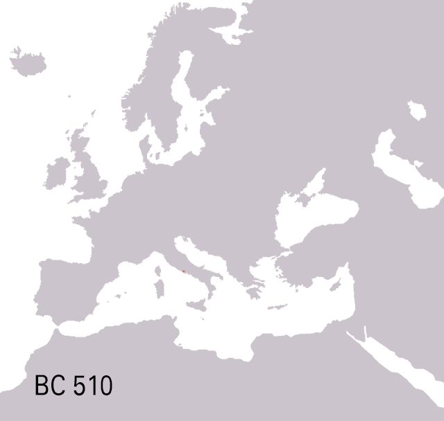 罗马的国王由公民大会投票选举,不能世袭。在国王的领导下罗马逐渐发展,周围的部落相继被打败。经历了七位国王,公元前510年,最后一位国王“傲慢者”塔克文被罗马人民驱逐,城邦的君主制结束,共和国取而代之,执政官、元老院及公民大会三权分立。