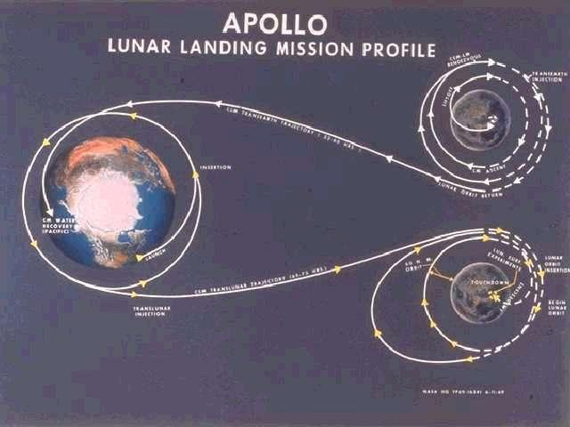 在多次实验后,美国宇航局最终采取了“月球轨道会合”来登月。登月计划是:从地球发射当时最大推力的火箭“土星五号”,将3名乘坐“阿波罗”太空船送到月球;然后“阿波罗”太空飞船绕月球轨道飞行,随即分离出一艘登月舱;登月舱会乘坐2名宇航员登月;最后当两名登月宇航员完成完成任务之后,会乘坐登月舱于“阿波罗”回合对接,最后回到地球。