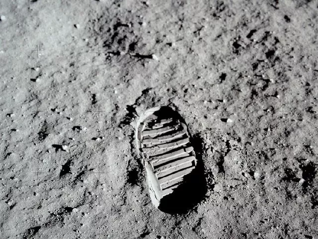 1969年7月21日2点56分(UTC),阿波罗11号任务的鹰号登月舱在降落六个半小时后,阿姆斯特朗扶着登月舱的舷梯踏上了月球。近6亿观众通过电视直播看到第一个踏上月球表面的人,指挥官尼尔·阿姆斯特朗说出了那句名言:“这是我个人的一小步,但却是全人类的一大步(That's one small step for (a) man, one giant leap for mankind.)。”