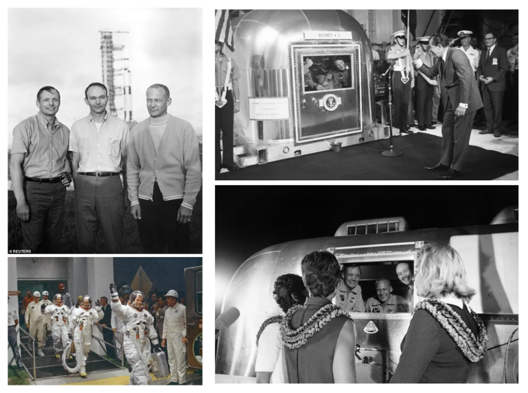 宇航员们于1969年7月24日返回地球并降落在太平洋上,受到了英雄般的欢迎。阿波罗11号任务取得胜利后,全美举行了庆祝活动。宇航员们受到了款待,参加了游行,并向世界展示了他们带回的月球岩石样本。