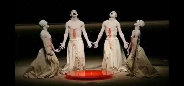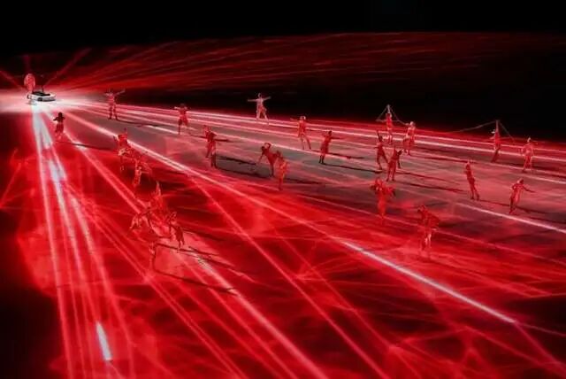 激情澎湃的开幕式,被演绎得如百鬼夜行。用舞蹈的方式向世界表达,一个灾祸不断的混沌世界重新迎接和平秩序的故事。导演的目的达到了,起码连小孩子都说很害怕了。复杂的红色线条交织在一起,象征着疫情期间,人们复杂而纠结的心情。虚实结合的红色线条,互相拉扯,也代表着人体内神经和肌肉的运转。