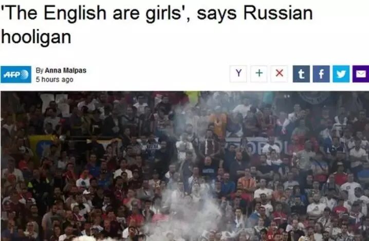 2016年欧洲杯,曾爆发过一场“世界大战”。当时英格兰和俄罗斯的比赛踢平。现场的俄国球迷和英国球迷,进行了一场“亲切友好的附加赛”,从内场延续到了外场。200多个俄罗斯人,大战几千名英格兰人。事后,俄国小混混“夸赞”英国人是“小姑娘”。大帝东道主对本国球迷的行为表示谴责,但又话里有话,“我实在不明白,200个俄罗斯球迷,怎么就能把几千个英国球迷打了...”
