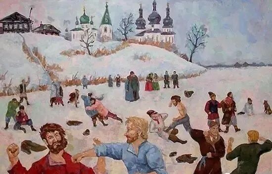 “俄罗斯的母亲在教会孩子走路之前,俄罗斯的父亲已经教会了他们挥拳。”斯拉夫人长期以来都被视为英勇善战的民族,俄罗斯自古以来南征北战,为了培养铁血战士,从小把打架当游戏玩。东正教传入俄罗斯以后,大斋戒长达40天不能吃肉喝酒唱歌跳舞,人们向肉食品告别,称为谢肉节。除了暴饮暴食和烧稻草人之外,精力充沛的年轻人,也格外喜欢用拳斗庆祝佳节。