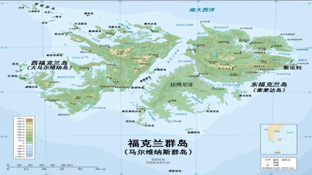 马岛不是一个岛,而是群岛,由200多个小岛组成,总面积12200平方公里。阿根廷称之为马尔维纳斯群岛,英国人则管它叫福克兰群岛。