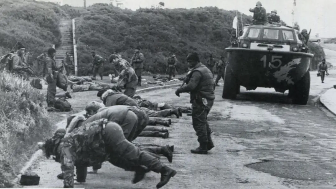 1982年2月,英、阿关于马岛问题再次谈崩,加尔铁里决定采取军事行动夺回马岛,并开始做战前准备。3月19日,阿根廷60名伪装成企业员工的军人,乘坐海军运输船在马岛的利斯滩登陆,并插上了阿根廷国旗。