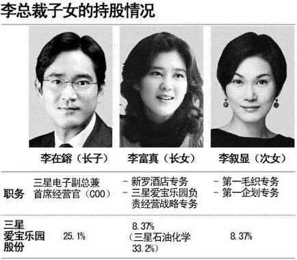 为避免豪门悲剧再次发生,李健熙早早让子女们掌管不同的集团业务:大儿子管电子&金融,二女儿管酒店&化工,三女儿管服装&广告。看上去很公平,但李健熙分给儿子三星最核心的产业,三星电子和金融。
