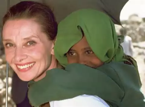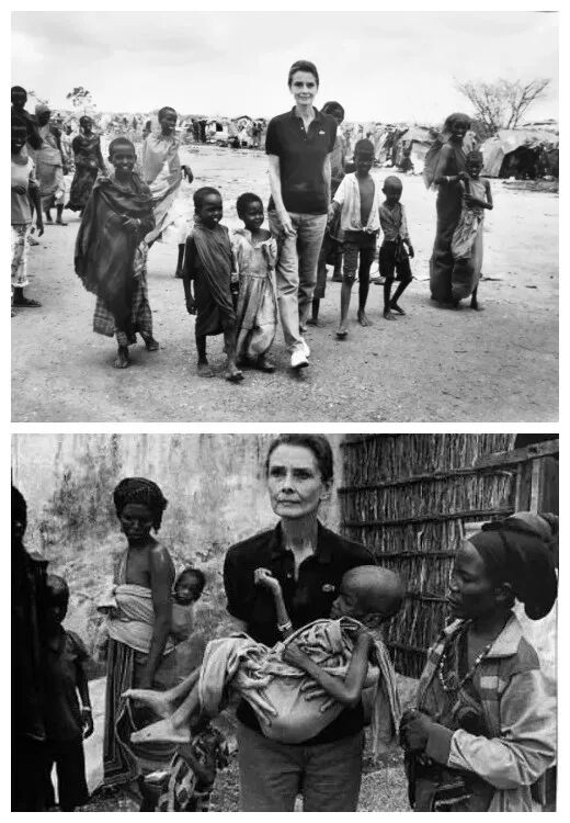 没有专机,没有车队,没有随从,赫本曾坐在货运飞机里的米袋上,辗转十几个小时,飞到充斥着战火与传染病肆虐的埃塞俄比亚,去看望那里的孩子们,真心地拥抱和亲吻每一个孩子。“父母都希望自己的子女有一个好的未来。那里的人们不希望施舍,希望得到的是机会。谁能想到,这个位列世界上最贫穷的国家,竟然拥有2000多年的历史。在历史上,他们的帝国统治的地域竟然可远达埃及。如果我们给这些人民机会的话,他们会交出令人惊异的答卷。我感到悲观的是,在发展中国家的人民之中,蕴含着改变命运的能力,但是却没有人去支持他们。我对人民有着超出以往的乐观。我相信人民,但是却对世界各国的国会中的争论有着非常明显的失望。我们的国会,将事关未来的话题抛开,只关心眼前的选举话题”。