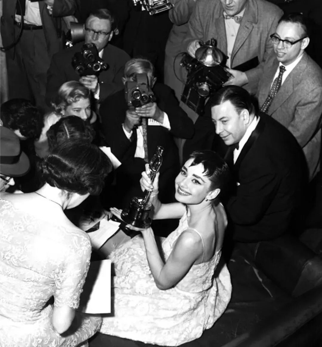 结果奥黛丽·赫本和电影一炮而红。在1954年的奥斯卡颁奖典礼上,《罗马假日》获得7项提名和3项大奖。23岁的赫本摘取了分量最重的“奥斯卡最佳女主角”奖。