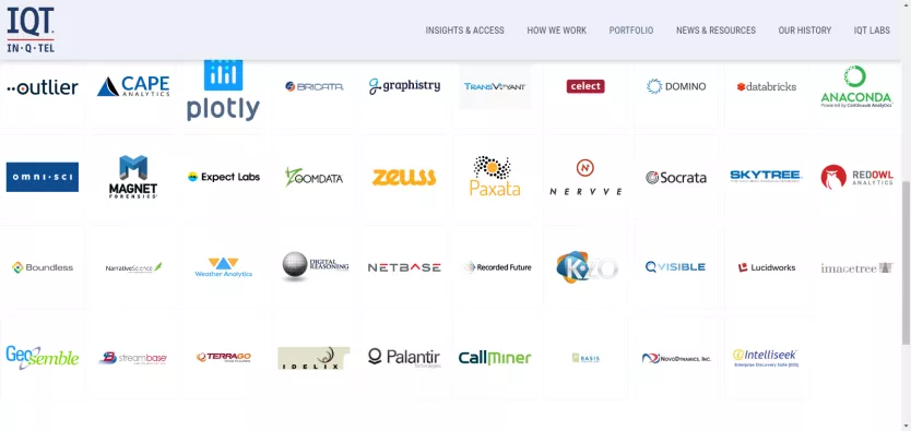 CIA在档案中列出了In-Q-Tel投资上感兴趣的技术领域,分别是数据储存和挖掘;知识管理;分析搜索代理;地理信息系统;图像分析和行为确认;统计数据分析工具;翻译;目标信息系统;可移动式计算;安全计算。