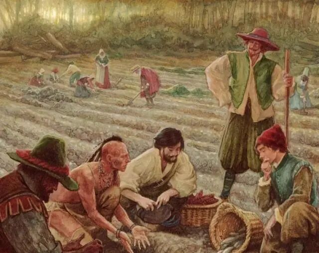 哈德逊河口地区,有个叫做万帕诺亚格(Wampanoag)的印第安部落,原本这个非常强盛,巅峰时有两万多人口。但是当殖民者来到美洲后,就被其他印第安部落势力攻打,人口急速缩减到了仅1000余人。危亡之际,该部落的酋长马萨索伊做了个决定:与刚刚到达美洲的五月花号白人移民合作,通过帮他们在新大陆立足,来换取先进的铁器和枪炮,帮助自己的部落躲过仇家部落的追杀。