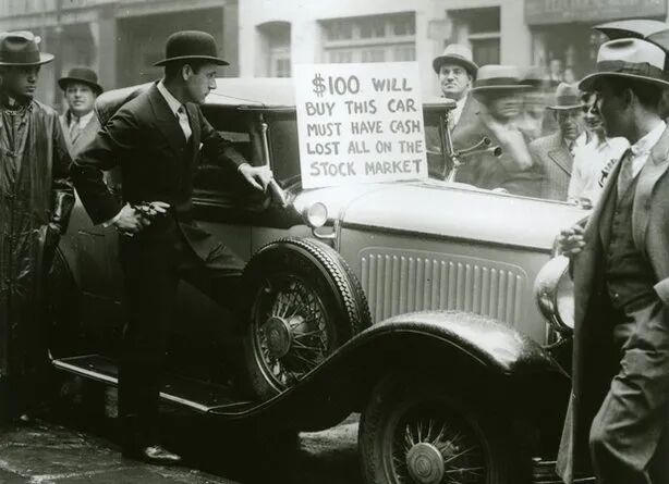 1929年10月24日,纽约股票市场价格在一天之内下跌了12.8%,大危机由此开始。紧接着就是银行倒闭、生产下降、工厂破产、工人失业。大危机从美国迅速蔓延到整个欧洲,和除苏联以外的全世界。这是迄今为止,人类社会遭遇的规模最大、历时最长、影响最深刻的经济危机。
