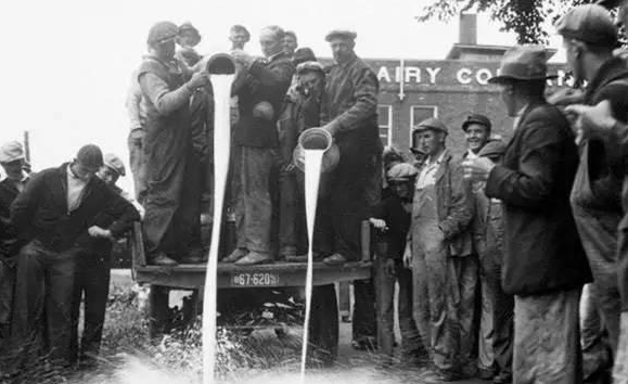 大萧条的一个重要原因,就是购买力赶不上生产力,说白了就是“供大于求”。打个比方:你卖一卡车的燕麦,也换不来一双名牌皮鞋;一只羊只能卖出1块钱,但送到市场的运费就要1元1角钱。资本家和农场主,宁愿把牛奶倒进密西西比河,用小麦和玉米做燃料,赊账买子弹把牲畜都杀死,也不愿将商品卖出。