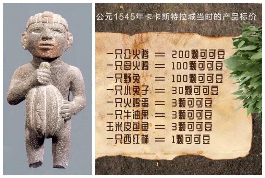 天然的可可树林生长在热带低地,可可豆非常稀有。在阿兹特克帝国统治期,周围的部落都需要将可可豆作为贡品进行朝贡。这种稀缺性,一度让可可豆成为阿兹特克帝国的通用货币,也用来交抵赋税。与金银不同,可可豆这种硬通货是可以吃的。在盛大的祭神活动中,可可能单独作为饮品,带着人们赋予它的神秘象征意义,直接呈上供桌;还有一种用法,是让充当人祭的奴隶饮下一杯,待他身上具有了可可带来的神的感应再去慷慨赴死。