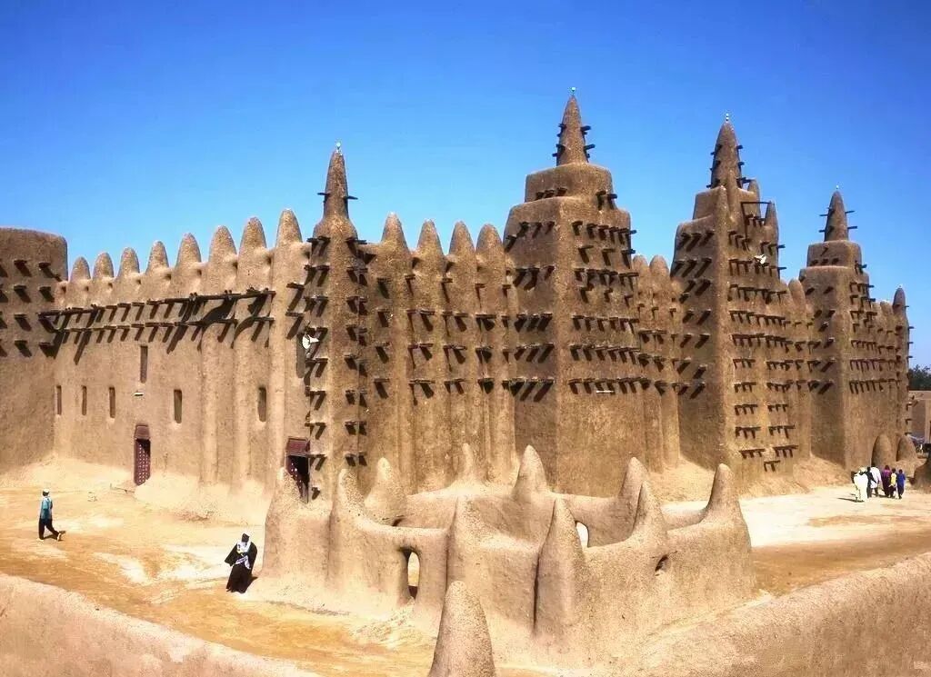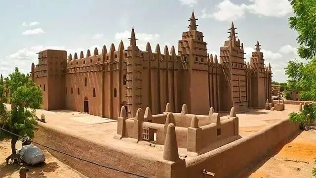由于贸易的繁荣,西非地区的城市也迅速兴起,在君主的支持下萨赫勒地区的艺术和文化也极度的繁荣,由于西非草原地区缺少石材和木材,西非人大量使用黏土作为建材,并在建筑表面装饰丰富的彩绘,但可惜彩绘无法长久保存,所以我们今天看到的古建筑都是褪色的,无法再现当年的辉煌。
