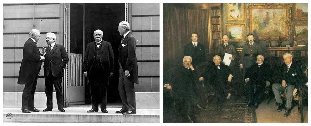 在1919年的巴黎和会上,各国代表踊跃投票,批准成立了一个国际联盟事务委员会。只要是一战期间对同盟国宣战的国家,都是国联的创始会员国。国联由大会、理事会、秘书处三部分组成。理事会初步拟定,由美、英、法、意、日五大国为常任会员,另选四小国(国联虽然是美国倡议成立,但实际控制在英、法手中。美国因国会不愿批准对德和约,威尔逊又竞选连任失败,遂未加入国联。1926年,德国加入国联,反而成为第5个常任理事国)。