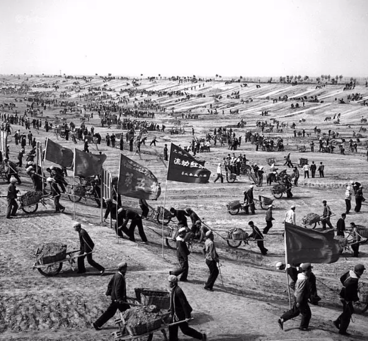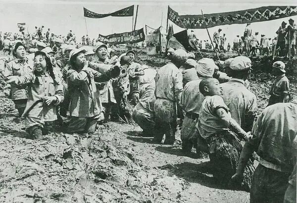 1958年下半年开始的“大跃进运动”,各地兴起了修建水库的热潮。大型水库,如北京密云水库、浙江新安江大水库、辽宁省汤河水库、河南省鸭河口水库、广东省新丰江水库、海南省松涛水库等,都是在大跃进中施工或建成的。治水的规模大、力度强,是大跃进时期水利建设的一个特征。由过去的筑堤、导流发展到对大江大河的拦河、截流、改道等,气壮山河。