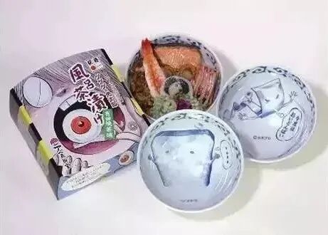 鸟取县是著名日本漫画人物“鬼太郎”的作者水木茂的故乡。这款“鬼太郎”便当采用的是日本著名的有田烧,并在上面绘制与漫画相关的图案。这款便当不仅是美味的茶泡饭,还是《鬼太郎》粉丝的必收之物。