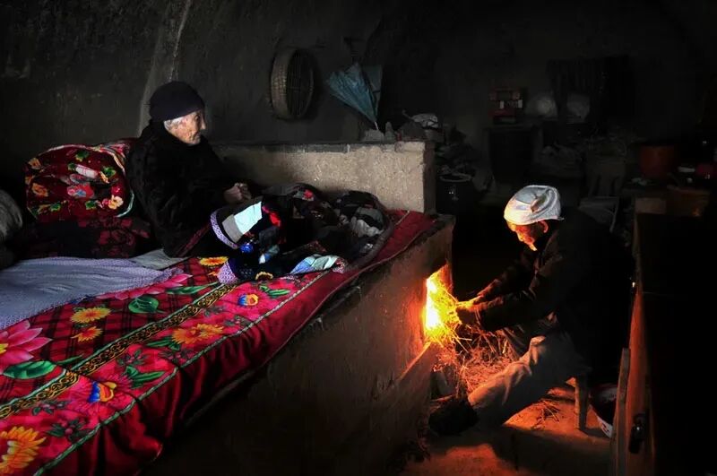 烧炕是北方特有的生活习俗,炕和灶台相连,以前北方人会在三餐开始之前烧炕做饭,热气同时传递到灶上,待到饭菜制作完毕,主人家还会持续往灶里添柴等燃料,保持屋内温度。
