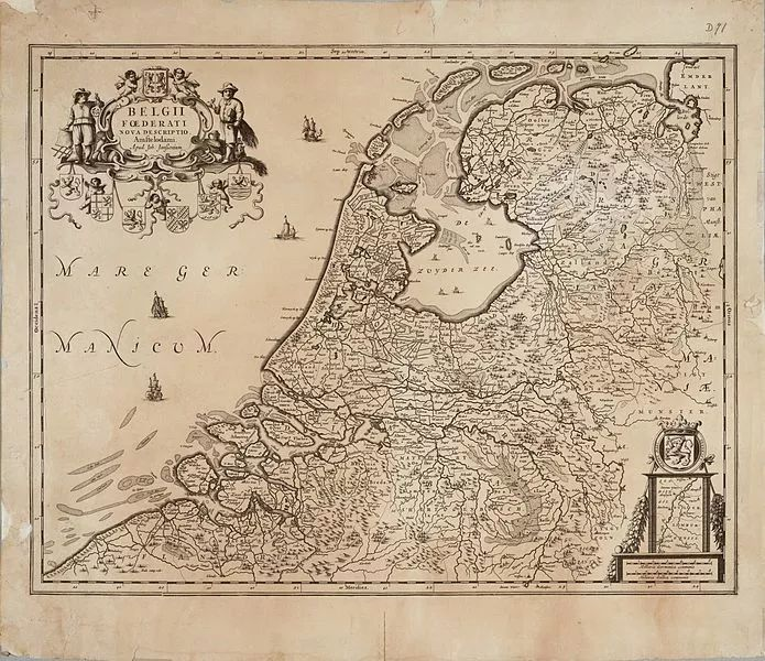 1568年,因反抗西班牙国王的中央集权和对新教加尔文派的迫害,爆发了持续80年的北方省反抗西班牙的战争。1581年7月26日,来自荷兰各起义城市的代表在海牙宣布:废除西班牙国王对荷兰各省的统治权,联盟宣布独立,成立尼德兰联合共和国,第一个成功的资产阶级革命成就达成(尼德兰革命)。不过直到1648年,西班牙国王菲利普四世签订《明斯特条约》,才承认七低地尼德兰七省联合共和国。