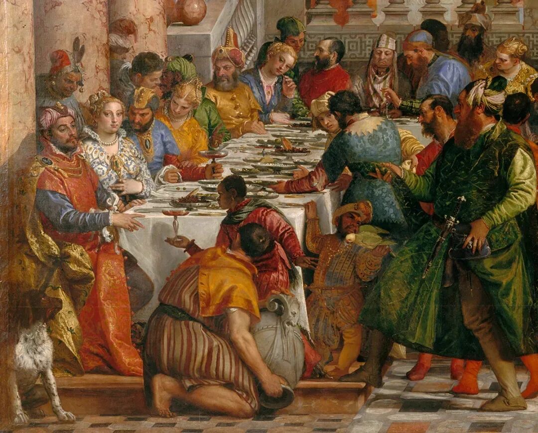 古希腊人与古罗马人恰恰相反,他们非常崇尚简朴的饮食文化,认为食物只是为了填饱肚子。一颗玉葱,一个鱼头,几颗橄榄就足够了。所以希腊人的晚宴并不会出现山珍海味,虽然也喜欢躺着吃,不过更像是在开一场座谈会,就餐者纷纷拿着酒杯高谈阔论,讨论政治、哲学。