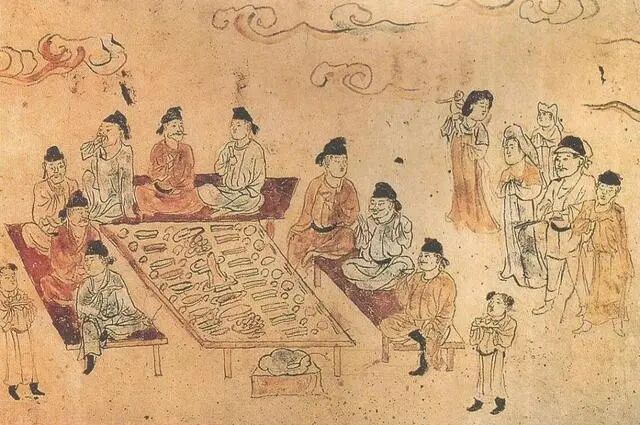 在古代,粟米是大多数人唯一吃得起的粮食,要不就是吃点豆子和野菜。周朝以后小麦出现,连壳一起蒸熟着吃,又叫麦饭。这种饭不易消化,口感差,随着小麦研磨技术的发展,才让人爱上面食。汉唐时将面食皆称为饼,烤制的叫炉饼或烧饼,加芝麻的叫胡饼,用水煮食的叫汤饼,蒸食的叫蒸饼或笼饼。汉代人普遍还吃一种叫“糗糒(qiǔ bèi)”的主食。其实是晒干或炒干了的米饭,多盛在竹器里。食用时须和以水浆,水则装在瓦壶里,二者统称为“箪食壶浆”。