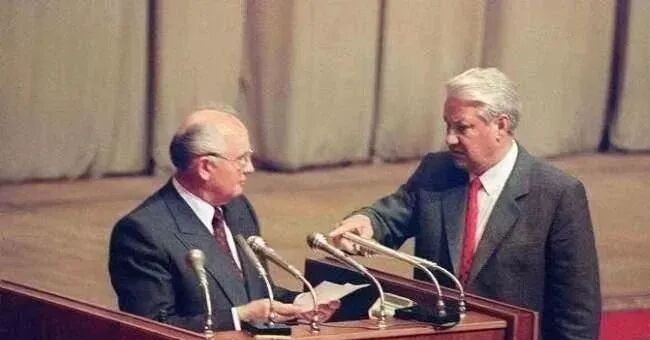 1991年12月25日的晚上八点,在克里姆林宫宫前,大红色的金星镰刀旗缓缓落下,随后取而代之的是俄罗斯白、蓝、红三色旗,曾经苏联的正红色如今只余三分之一。18分钟前,戈尔巴乔夫正式将“核按钮”转交俄罗斯总统叶利钦。
