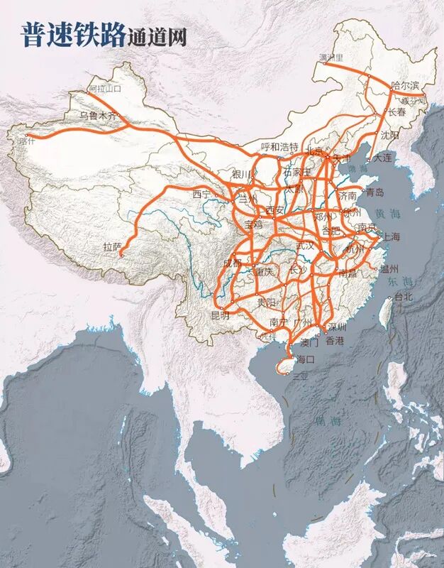 历经140多年,中国铁路从无到有、从少到多,它们运输钢铁、煤炭、木材,连接城市、乡镇、村庄,最终将形成12条普速铁路大通道,纵横交织、通边达海。