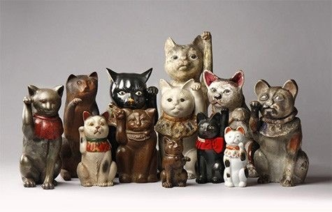 固定的外形、且由陶制的招财猫,出现于一个半世纪前的日本。在日语和英语中,“招き猫/maneki-neko”“挥手的中国猫(Chinese waving cat)”。