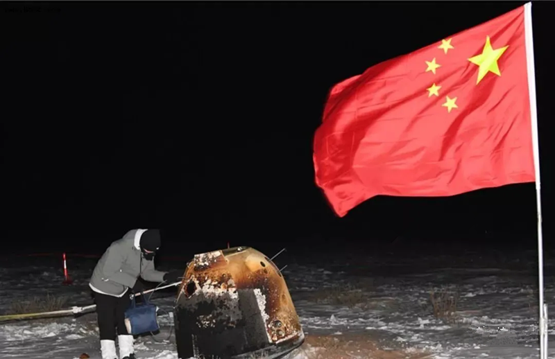 2020年11月24日,嫦娥五号探测器在文昌升空,赶赴“广寒宫”,经过11个阶段,20余天的在轨飞行,采集了大约1713克月球样品返回地球,降落在内蒙古四子王旗着陆场。嫦娥五号带回的月球土壤,一部分将送往北京科研,另外一部分将送往湖南保存。