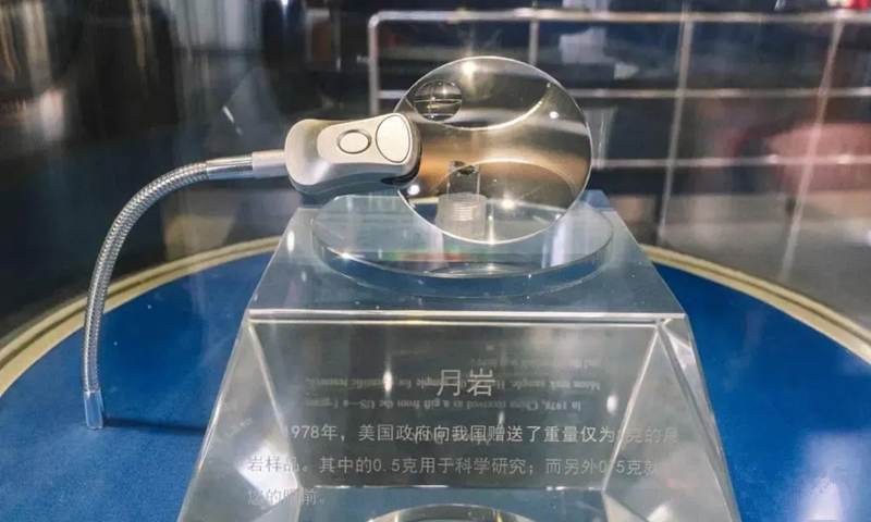 剩下这0.5克月岩,后来存放在中国北京天文馆(当时中国唯一的大型天文馆)的“月球—陨石展区”内,同展区内还陈列有中国探月工程的相关展品。这半克月岩就成为北京天文馆的“镇馆之宝”,供中外游客参观。