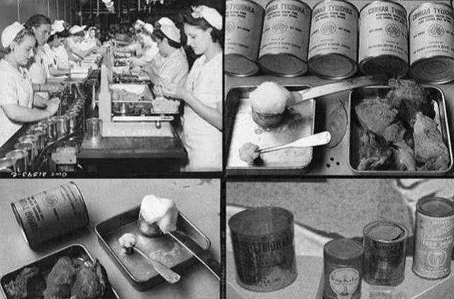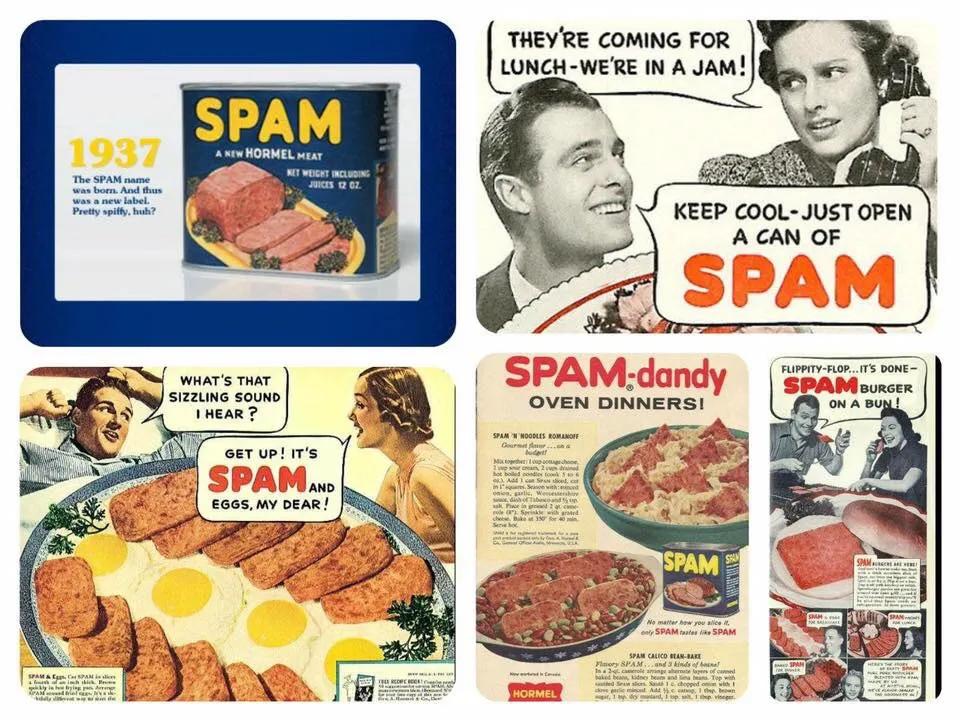 相传在诺曼底战役中,美国大兵在营地抱怨SPAM斯帕姆罐头太难吃,被路过的两名英国士兵听到。英国兵从餐盘中拿起两片午餐肉,扔到地上,然后捡起来若无其事地吃掉,再附送一个鄙视的小眼神。总之,罐头食品随着美军传播到亚欧大陆各地,还曾作为军需大量运到英国、苏联等地援助盟军。