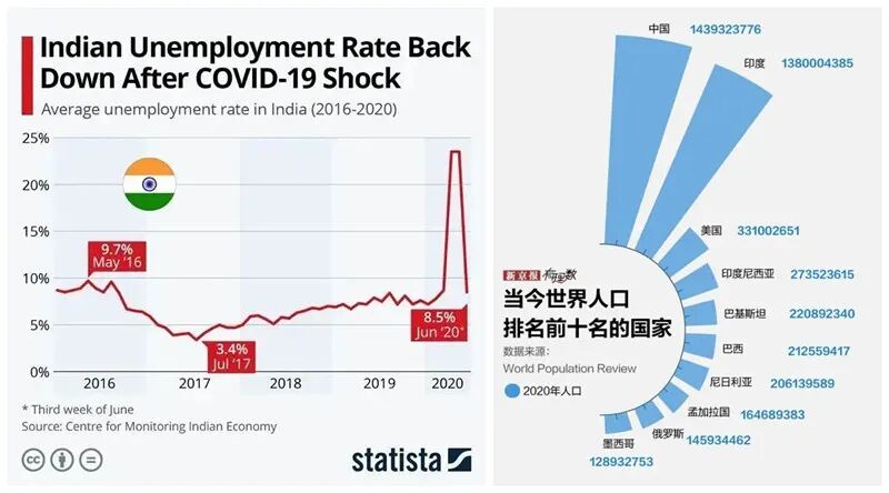 印度是仅次于中国的人口大国,可国家经济却一时无法提供与人口数量相匹配的就业岗位,再叠加印度遭遇了第二波新冠疫情,失业率就达到了8.5%。根据印度经济监测中心(CMIE)编制的数据显示,印度目前约41%的15-29岁年龄段的人失业,这一比例远高于2018-19年度的17.3%。保守据估计,印度将有2700万20至30岁的人失业。