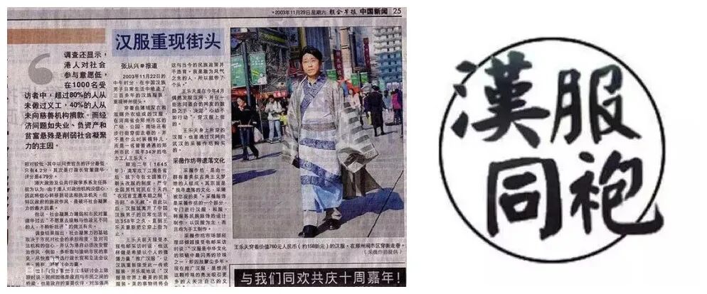 楚王好细腰,宫中多饿死。“以洋为尊”、“以洋为美”、“唯洋是从”的民族,绝对是没有前途的!好在,有识之士已在默默行动。2003年11月22日,郑州德化街。一位名叫王乐天的电力工人,身穿汉服,大步走在市中心的这条商业街。这是见诸报道的,中国现代汉服”第一人。